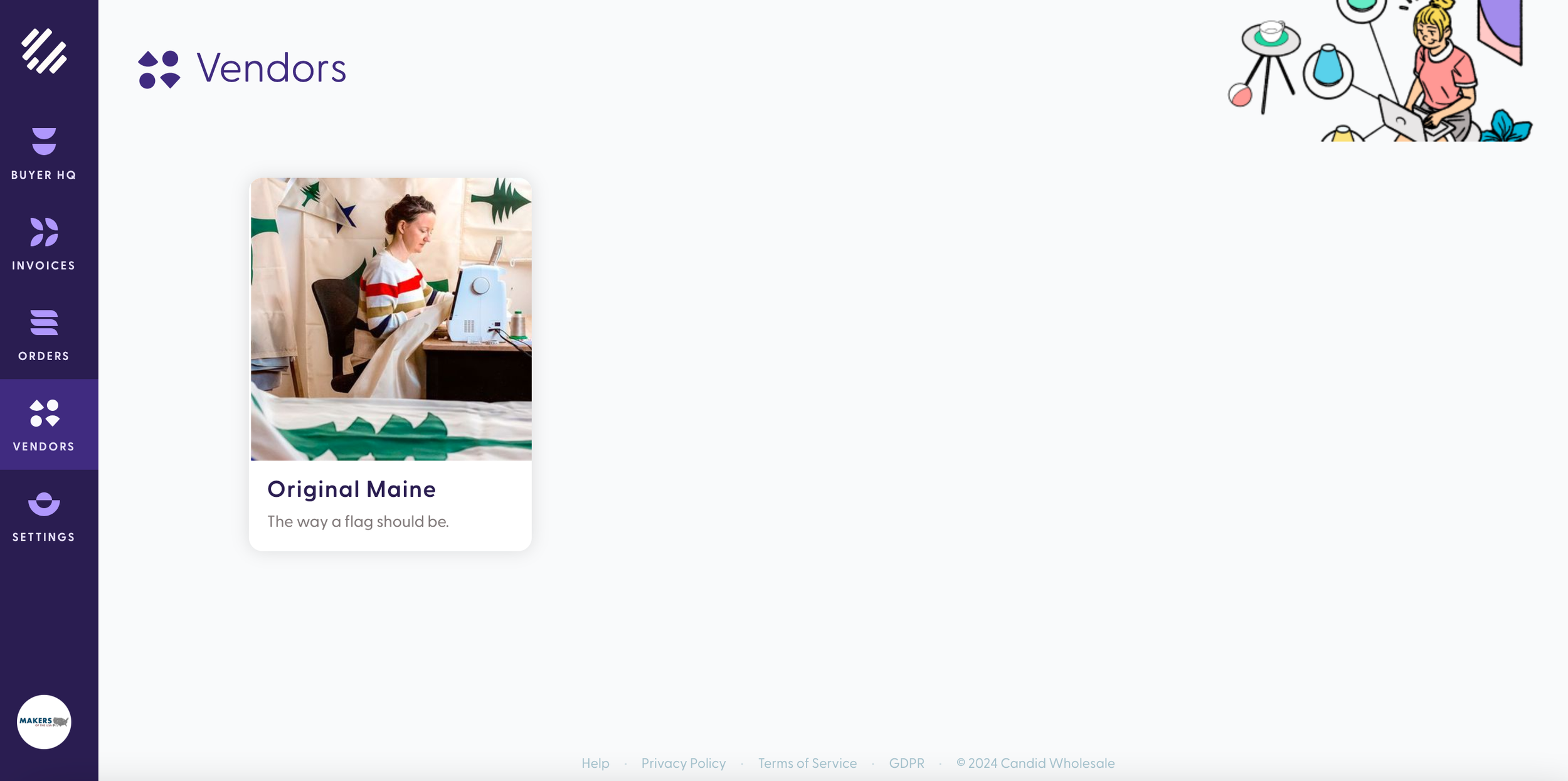 If you don't have Original Maine as a saved vendor, you can look us up by entering our name in the search bar seen here: