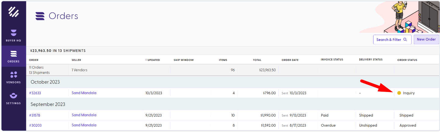 While you're waiting for us to respond you will notice that your order status will be shown as an "Inquiry":